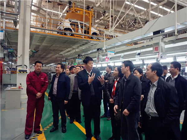 11月19日下午,在唐理斌副局長(zhǎng)等陪同下,考察團(tuán)一行來到江淮汽車股份有限公司考察調(diào)研。江淮汽車黨委副書記、紀(jì)委書記王東生熱情接待了考察團(tuán),陪同實(shí)地參觀江淮汽車發(fā)動(dòng)機(jī)生產(chǎn)線以及全自動(dòng)總裝生產(chǎn)車間,細(xì)致講解核心產(chǎn)品生產(chǎn)線的具體運(yùn)作。在隨后的座談中,王東生書記介紹了公司的發(fā)展歷程及歷史沿革??疾靾F(tuán)還就企業(yè)混合所有制改革等議題進(jìn)行了深入的探討,相互借鑒、互取所長(zhǎng)。