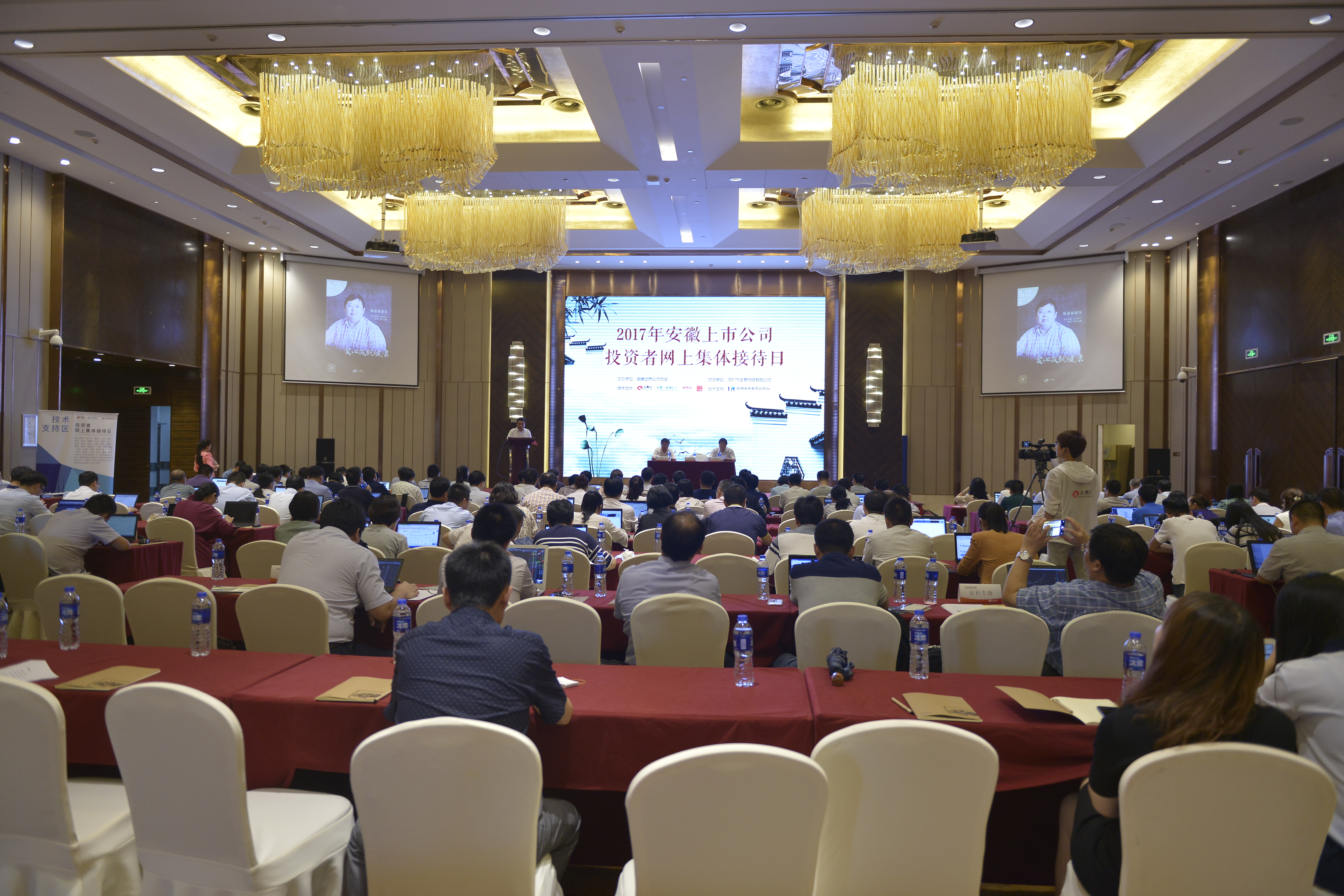 9月20日,我會(huì)在合肥舉辦“2017年安徽轄區(qū)上市公司投資者網(wǎng)上集體接待日”活動(dòng),53家上市公司共計(jì)150多名安徽轄區(qū)上市公司的高管到場(chǎng)參加。安徽證監(jiān)局黨委書記、局長(zhǎng)葉錦偉出席會(huì)議并發(fā)表講話,安徽上市公司協(xié)會(huì)副會(huì)長(zhǎng)、秘書長(zhǎng)袁宏生,安徽證監(jiān)局公司處處長(zhǎng)蔣誠(chéng),深圳市全景網(wǎng)絡(luò)有限公司董事程春生等出席活動(dòng)。