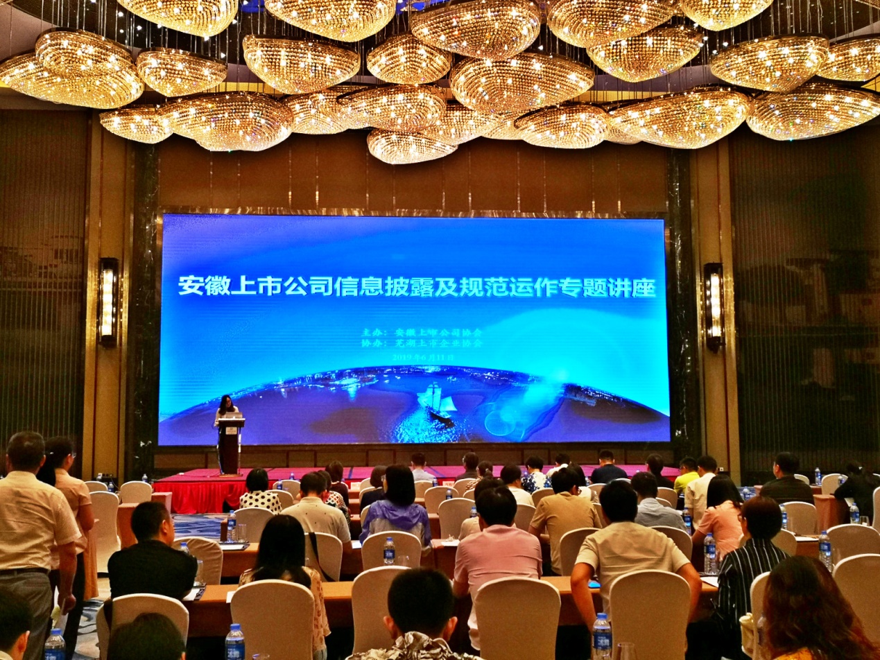 為進(jìn)一步提高信息披露質(zhì)量、提升上市公司規(guī)范治理水平、促進(jìn)上市公司的高質(zhì)量發(fā)展,我會于611日在蕪湖舉辦安徽上市公司信息披露及規(guī)范運作專題講座,來自七十余家會員單位的130多名高管及相關(guān)人員參加講座。