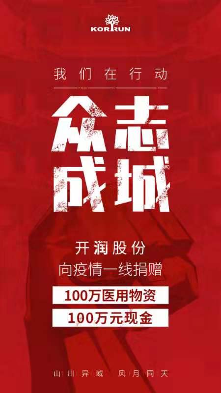 開潤(rùn)股份向疫情一線捐贈(zèng)100萬醫(yī)用物資100萬元現(xiàn)金