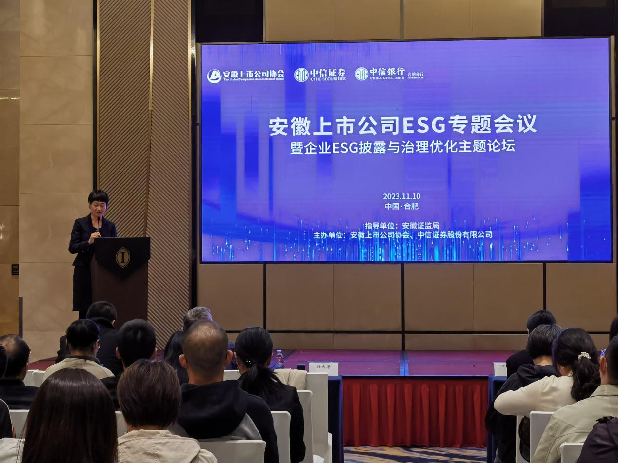 為深入推進ESG理念在企業(yè)中的貫徹實施,幫助安徽上市公司精準把握ESG披露標準和優(yōu)化策略,助力企業(yè)全面規(guī)避業(yè)務(wù)風險、把握資本市場機遇,實現(xiàn)高質(zhì)量發(fā)展。在安徽證監(jiān)局的指導下,我會聯(lián)合中信證券于11月10日在合肥成功舉辦“安徽上市公司ESG專題會議暨企業(yè)ESG披露與治理優(yōu)化主題論壇”活動,轄區(qū)50余家上市公司和金融機構(gòu)代表共120余人參會。