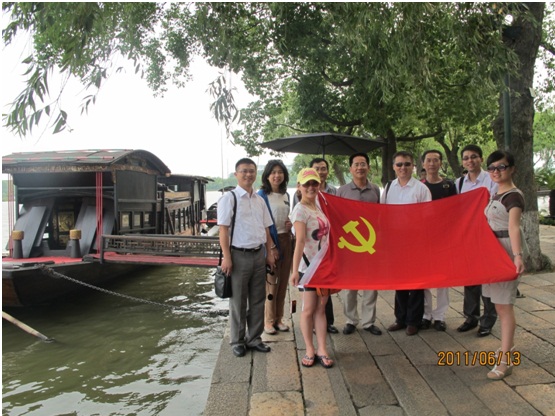浙江嘉興是考察團(tuán)行程的第一站。六月的嘉興大地,草木蔥蘢,生機(jī)勃勃,悠悠南湖,碧水蕩漾,游人如織。90年前,嘉興南湖發(fā)生了一件中國(guó)歷史上開(kāi)天辟地的大事件——中國(guó)共產(chǎn)黨第一次全國(guó)代表大會(huì)在這里完成了最后的議程,正式宣告成立??疾靾F(tuán)一行懷著十分崇敬的心情來(lái)到南湖景區(qū),瞻仰南湖紅船,認(rèn)真聽(tīng)取講解,接受深刻的黨史教育,并不時(shí)就有關(guān)問(wèn)題相互展開(kāi)討論。